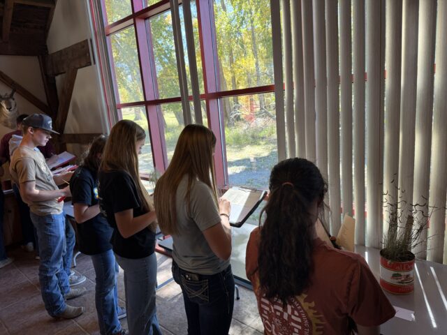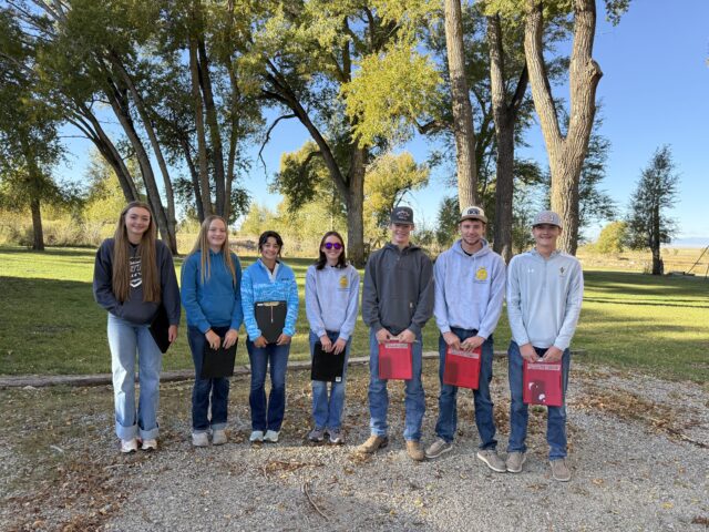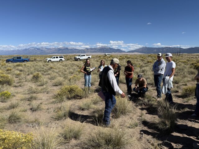 During the competition, students demonstrated their knowledge by identifying 20 local rangeland plant species and assessing one ecological site. At the ecological site, they completed a detailed rangeland inventory, evaluated plant composition—showcasing their understanding of plant ecology and land management. While scorecards were tallied, the students listened to a presentation from Regan Velasquez with the Conejos Conservation District about his personal experience as a rancher striving to improve the health of his land through grazing management.