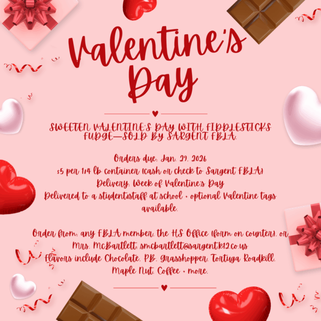 Sargent FBLA is selling Fiddlesticks Fudge for Valentine’s Day. Order Deadline: Thursday, January 29, 2026Price: [...]